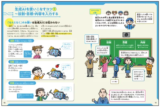 最先端の人工知能である「生成AI」は、これからを生きていく子どもたちにとって、身近な存在になっていきます。生成AIを正しく使えば、新しいものやアイデアをつくりだしたり、やりたいことを手伝ってくれたりする、心強い相棒になります。1巻では、生成AIとの正しい付き合い方を紹介し、2巻ではイメージ通りのものをつくるために、具体的な生成AIの使い方のコツを紹介します。実際に学校で使うときを想定したつくりになっているので、子どもたちも生成AIの使い方や問題点をイメージしやすくなっています。また、生成AIをこれから使ってみたいというおとなにもおすすめです。