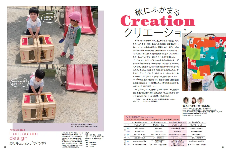 保育・教育 美育文化ポケット 第47号 発行日 2025年9月(発行月 3月・6月・9月・12月) 出版社 公益財団法人 美育文化協会 編集のポイント 『美育文化ポケット』は、主に乳幼児~小学生が、描くことや作ること、ありのままの自分を表現することをもっと楽しんでほしい!という願いのもと編集されている、造形・美術教育雑誌です。毎号、たくさんの保育・教育現場の先生方のご協力により、子どもたちの生き生きとした物語が、アートを通して色鮮やかに紹介されています。明日の保育や授業のヒントに、そして、「子どもの見方」を変えるきっかけにも。 制作実績一覧へ 制作実績一覧へ